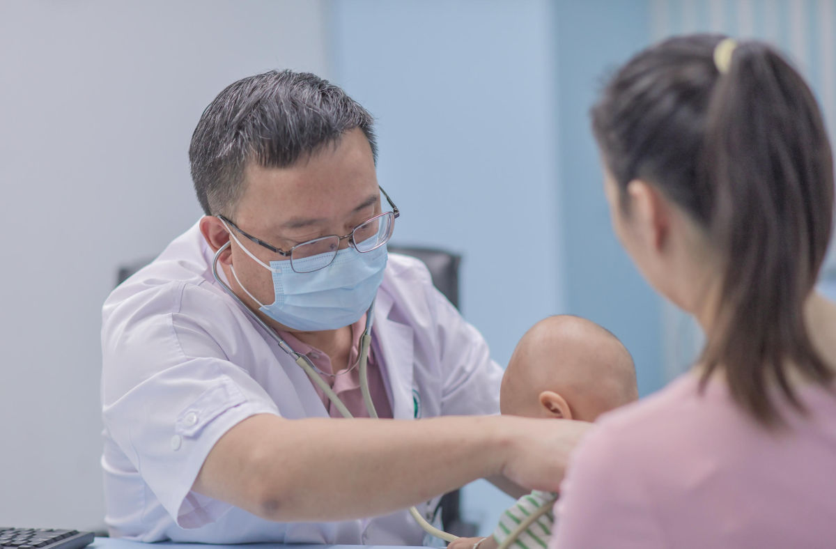 董文斌为患儿看诊“一名早产儿出生后,有很多关要过。”他解释,如新生儿呼吸窘迫综合征(RDS)是新生儿出生后不久即出现进行性呼吸困难和呼吸衰竭等的症状。若不及时干预,有可能造成患儿脑损伤、听力或视力异常、肺部发育不良及远期神经系统发育迟缓等。