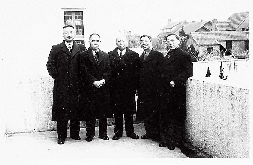 1949年3月,中国工程师代表团赴南京请愿前在上海合影。从左至右:顾毓瑔、赵祖康、侯德榜、茅以升、恽震。供图/赵国通