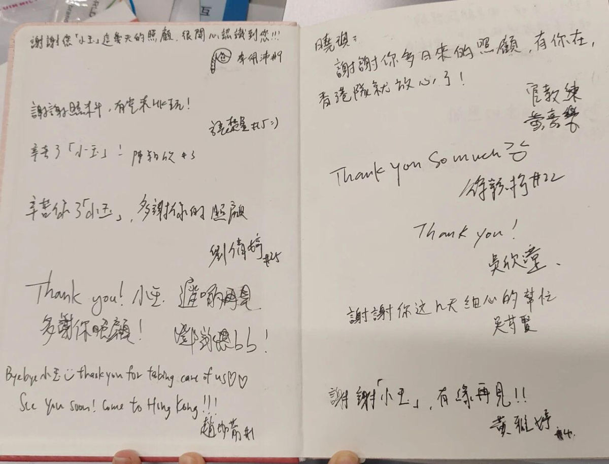 “谢谢你多日来的照顾,有你在,香港队就放心了”“谢谢‘小玉’,有缘再见”……13日上午,香港女篮结束全运会征程,启程返港。临行前,女篮姑娘们共同写下一纸祝福,交给随队志愿者陈晓琪。朴素的字里行间,流淌着真挚的谢意。