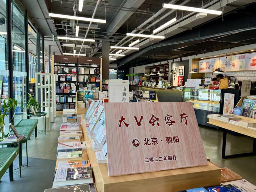 图为朝阳区“大V会客厅”。受访者供图走进由新书店,落地玻璃窗上标有“创新者的共享书房”字样,店内集书店、文创、咖啡、媒体直播间和活动场地等混业经营于一体,以“对的人带来对的人,对的人带来对的书”标语而被外界所熟知。