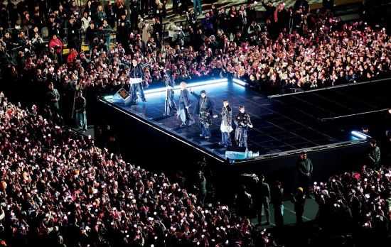 3月21日,因成员入伍而休团3年9个月的BTS,在首尔光化门广场举办了宣告回归的免费公开演唱会。当晚,4.2万人到场应援,以至于韩国警方部署了72个机动队、35个刑侦小组等6700多名警力维持秩序。同时,这场演出也通过网飞向190多个国家进行了同步直播,并最终在其中77个国家的收视榜上登顶。
