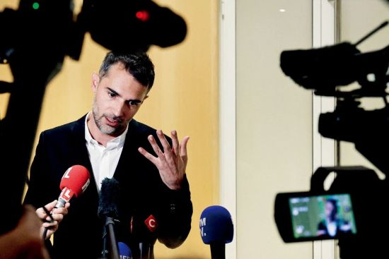 10月27日至28日,10名被告在巴黎刑事法庭出庭。被告之一的法国作家奥雷利安·普瓦松-阿特兰在庭审休息期间接受采访。