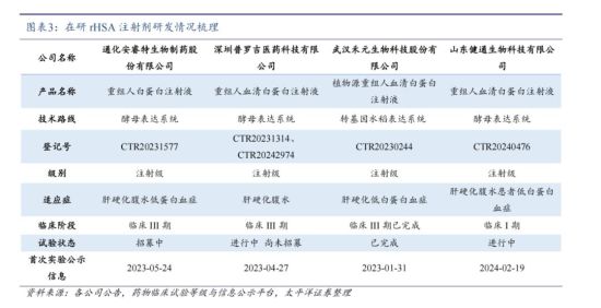太平洋证券研报指出,目前全球在研的重组人血清白蛋白产品基本均以肝硬化相关并发症为适应证,而肝脏疾病在白蛋白临床使用比例不到10%。