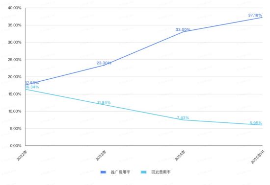 2022年至2025年上半年,世纪华通的推广费用率、研发费用率。图/中国新闻周刊整理自财报