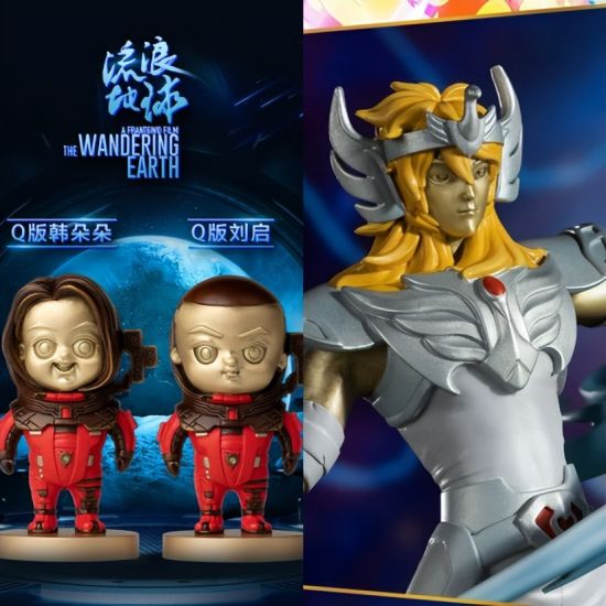 再比如“流浪地球”系列联名,铜师傅选择在角色脸部保留铜材质的色泽质感,但视觉层面却对粉丝“折磨”不小。