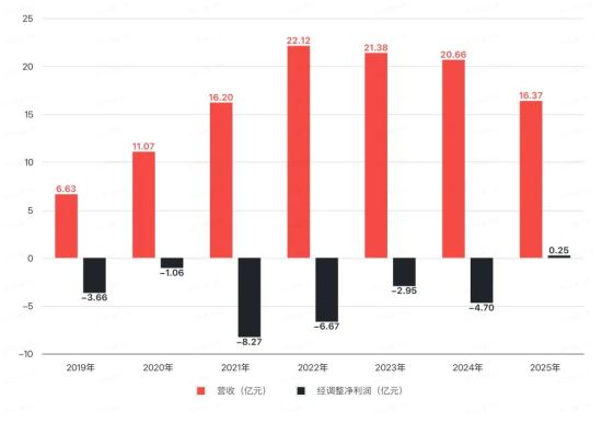 2019—2025年,Keep的营收与经调整净利润情况。图/中国新闻周刊整理自招股书及财报