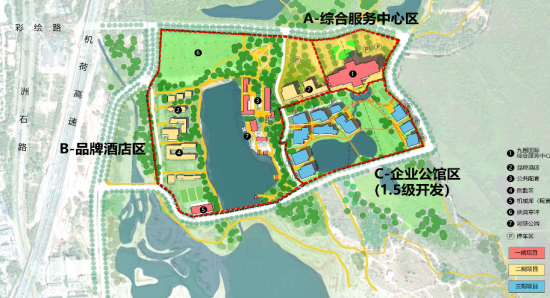 弹性空间规划:采用“和而不同”的模块化建筑布局,结合“顺于山、聚于塘、滨于河”三类总部聚落,满足企业多元化需求。例如,滨河总部岛借鉴客家排屋基因,打造低密度生态办公空间。