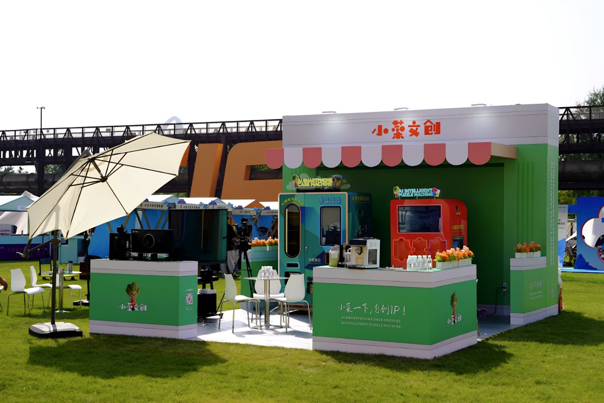 3.小菜AI文创贩售机(含手机壳打印机、拼图打印机): 依托自主研发的“小菜AIGC”系统,该设备可实现“属地场景+游客IP”的高度定制化文创产品生产,破解传统文创同质化难题。用户仅需210秒即可获得专属文创成品,全程自动化运行显著降低了传统文创纪念品行业的运营成本。