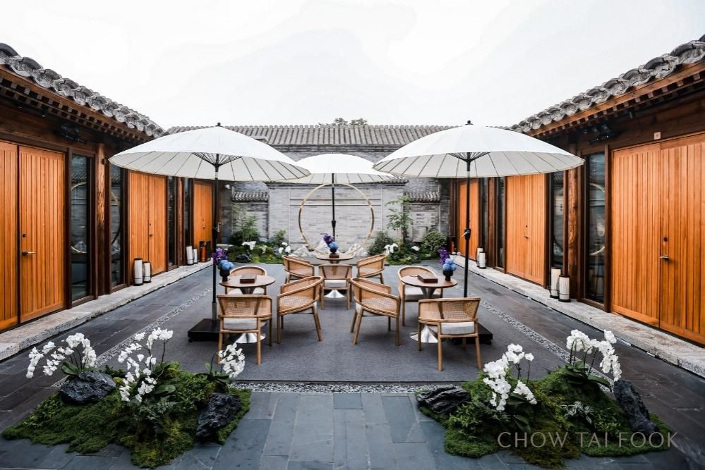 步入庭院,黛砖层迭间光影摇曳,让人恍若置身京华幻梦。古都气魄悄然流转,华夏文明的绮丽画卷亦在此缓缓铺陈,周大福全新高级珠宝“和美东方Timeless Harmony”系列开启此展第一重意境。“天圆地方” 既是此次展览的核心主题,亦是“和美东方”系列的重点之作。作品以金玉为卷,镌刻华夏文明对天地宇宙的永恒叩问,其灵感内核与形态意趣,恰与四合院的建筑哲学遥相呼应。一方一圆,是中国人延续千年的宇宙观,也是“天圆地方”最生动的空间注解。