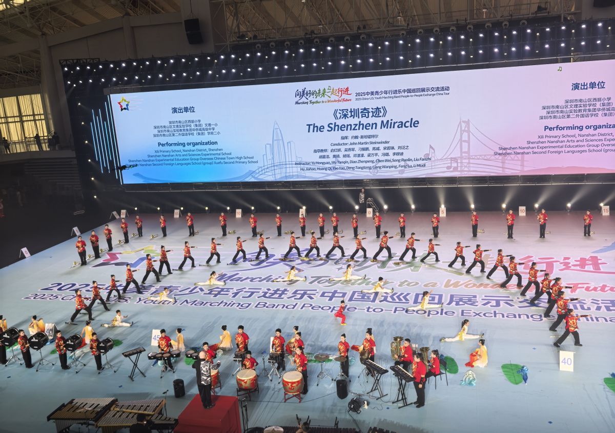 据深圳市教育局提供的资料显示,10月9至18日,2025中美青少年行进乐中国巡回展示交流活动在北京和深圳成功举行。在深圳期间,先后在深圳大学城体育中心和深圳人才公园举行了两场大型行进乐交流展演和巡演活动。