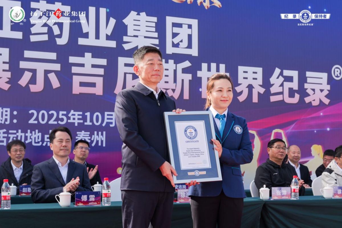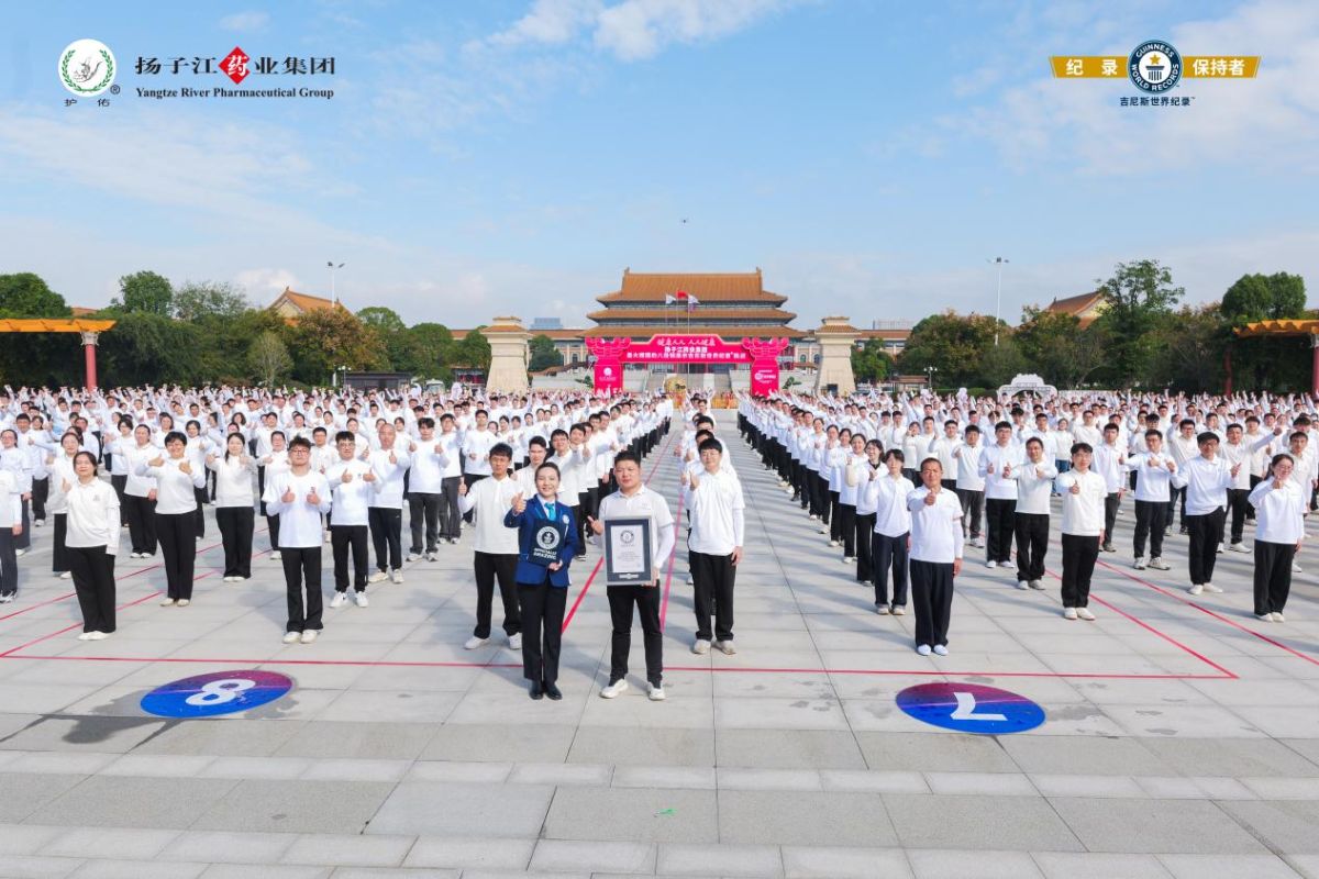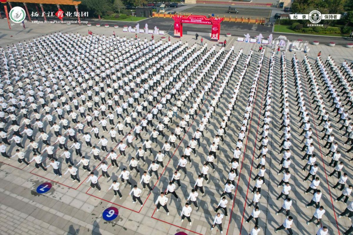 2025年10月31日,在江苏泰州扬子江药业集团(以下简称扬子江)总部护佑健康广场,一项新的吉尼斯世界纪录™荣誉诞生。3名来自澳大利亚、法国、土耳其的外国友人和1196名扬子江员工共同挑战“最大规模的八段锦展示”吉尼斯世界纪录称号,展现了中华优秀传统文化在当代的蓬勃生机与创新活力。