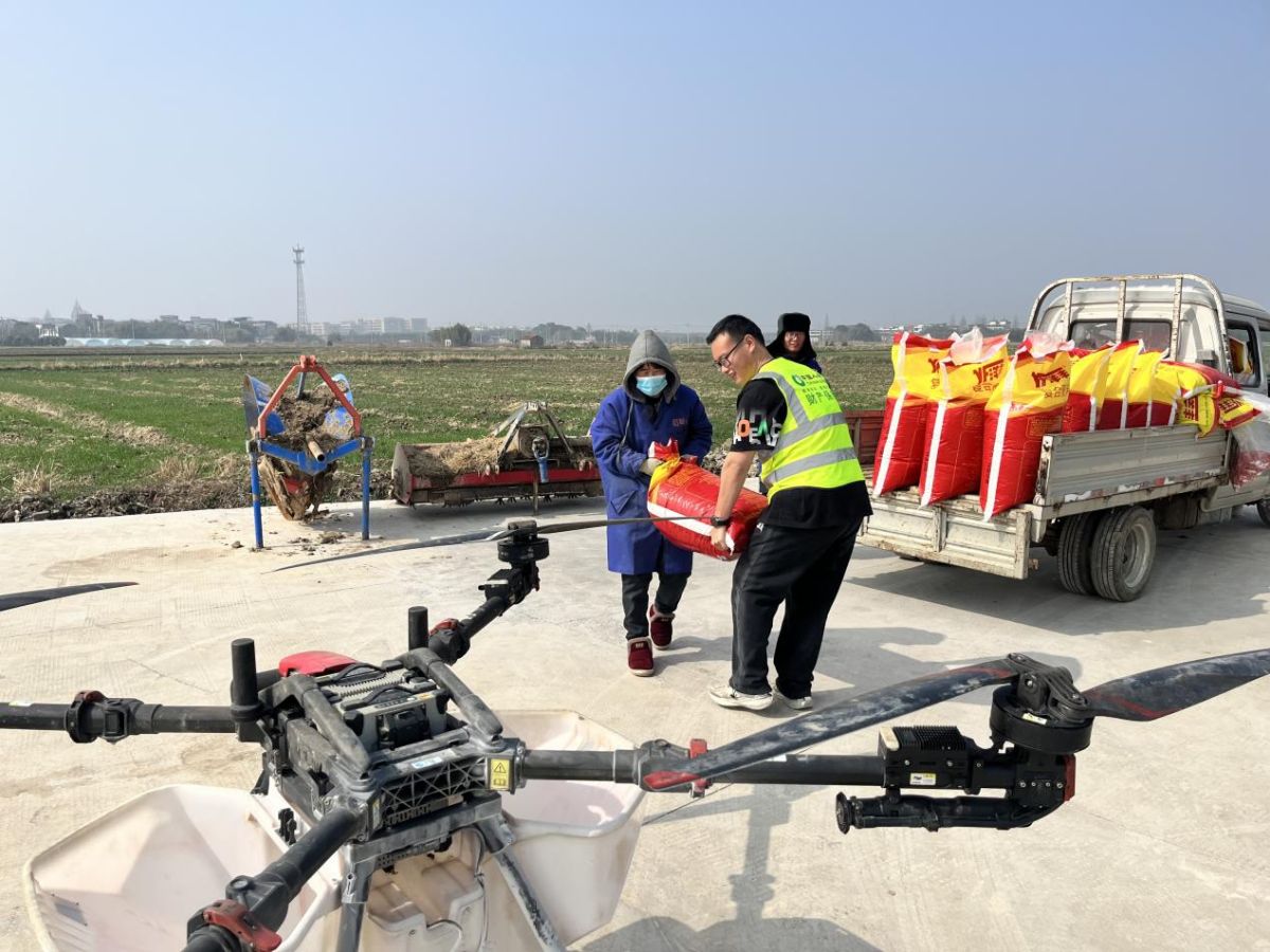 随着螺旋桨轰鸣,无人机匀速穿梭,肥料均匀洒落。“以前人工施肥一天忙到晚才几亩,现在无人机施肥真是方便多,肥料浪费少了又高效,还有保险兜底太安心了!”楼大叔赞不绝口。