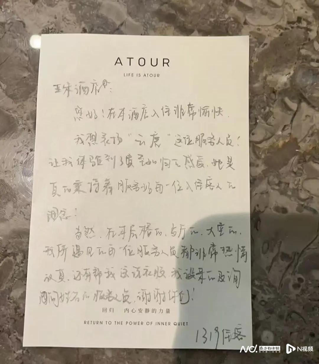 那张纸条她后来找了很久,最后在手机相册里翻到了。上面写着:“亚朵酒店您好,非常愉快,我想表扬云唐……”她没读完那句话,眼眶又红了。