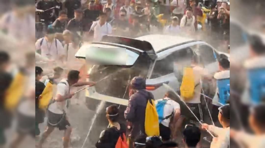 近日,云南西双版纳泼水节活动期间,一电动汽车车门及后备箱被强行拉开,多人向内喷水,此事引发争议。