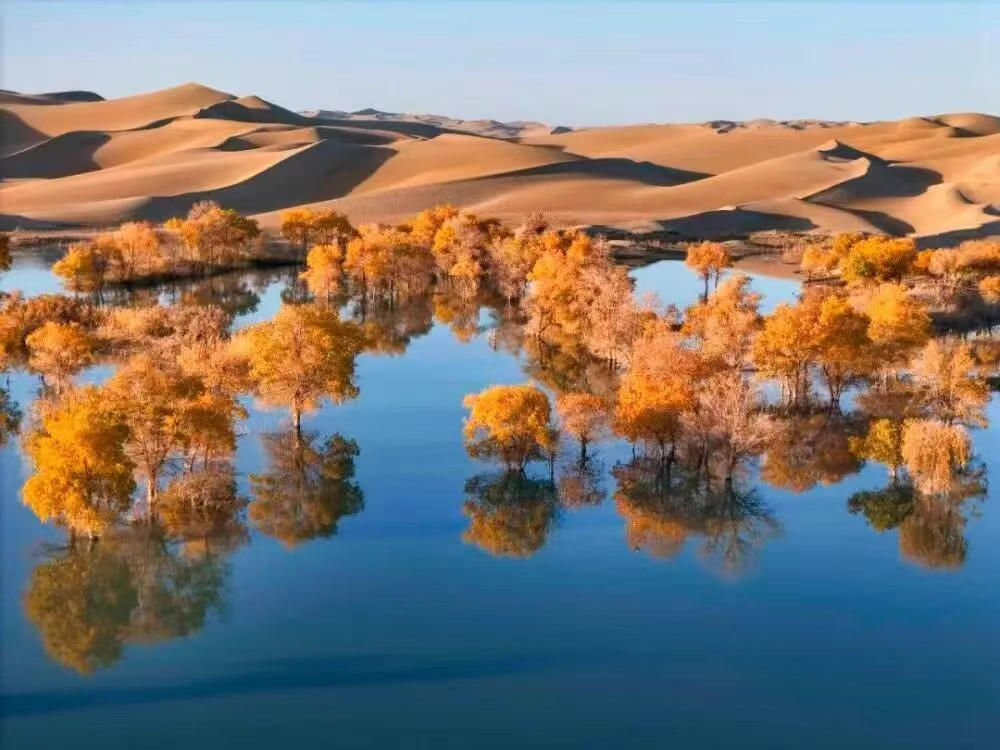 若赏胜景,壮美无双。山水形胜,名冠八荒。天池倒映博格达,雪峰倩影入清渊。冰崖雪莲绽寒芳,玉质冰心傲穹苍。游船泛波,惊鸥鹭之翔集;松涛送响,拂时风之清凉。喀纳斯隐于金山,湖光山色,宛若仙境,幻变七彩,传奇引人遐想。那拉提寓乎天山,枕带伊犁,水草丰美,浑欲宅兹毡房。赛里木高山琼碧,澄澈如泪,游鱼行空,天鹅掠水,恍若梦乡。火焰山赤焰熏天,烈日岩冈,金箍棒可度炎暑,葡萄沟无上清凉。荫下品瓜,甜如蜜醴;欢声笑语,满溢回廊。喀什老城,街巷曲折如肠。土陶作坊,非遗赓续;艾提尕尔,正信祈祥。伊犁河谷,塞外江南,晨风莺啭,杏花沾裳。帕米尔雄鹰振翅翱翔,塔里木瀚海博大苍莽。春赏杏花之娇艳,秋观胡杨之金黄,夏避酷暑于南山,冬驰心神于雪场。