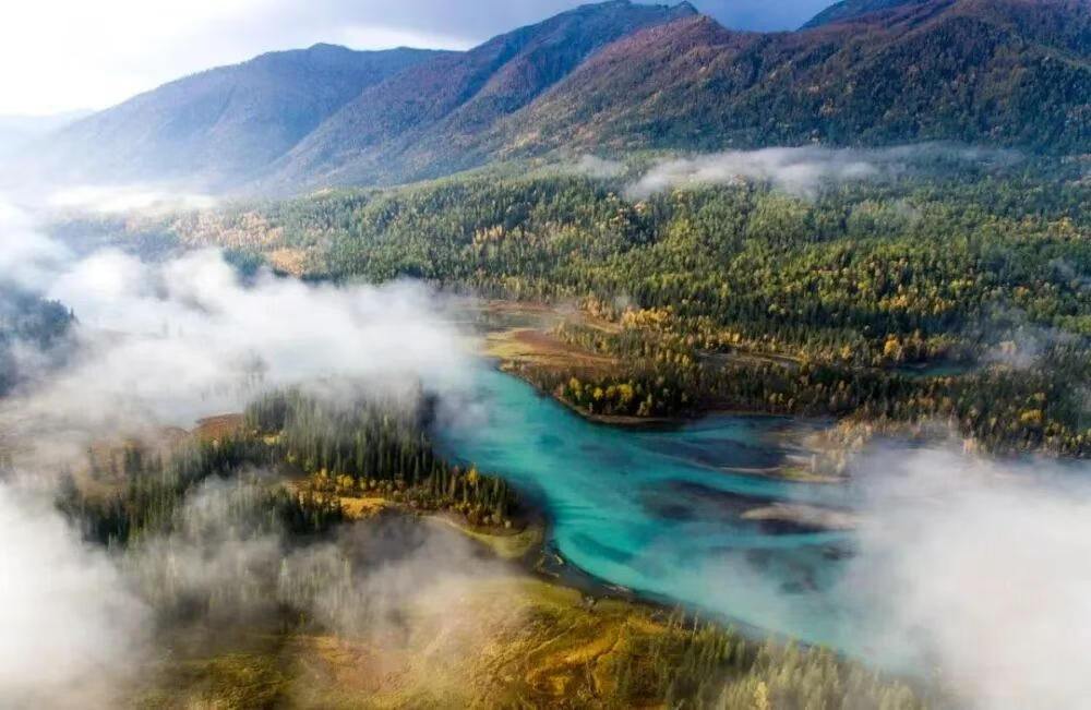 无人机拍摄的喀纳斯景区风光。新华社记者 王菲