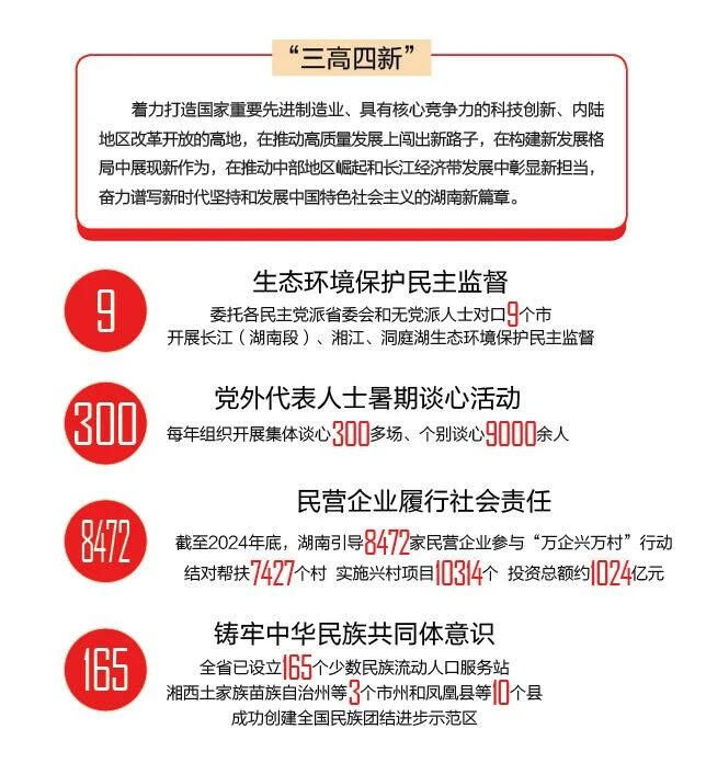 “十四五”以来,湖南统一战线坚持以习近平新时代中国特色社会主义思想为指导,深入学习贯彻习近平总书记关于做好新时代党的统一战线工作的重要思想,紧扣党中央决策部署和省委工作要求,在守正创新中共绘同心圆、聚力促发展,为实现“三高四新”美好蓝图、奋力谱写中国式现代化湖南篇章汇聚磅礴力量。