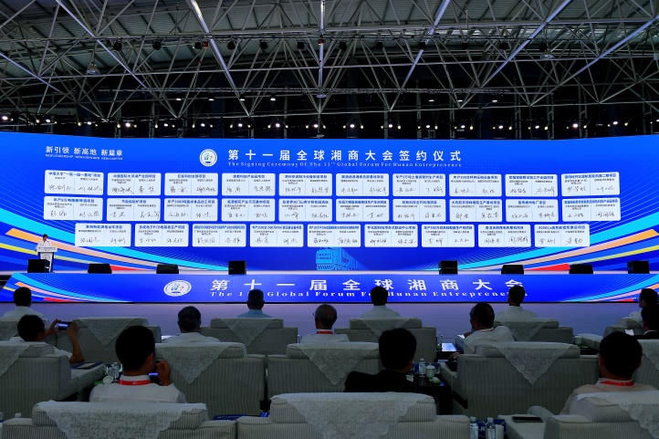 第十一届全球湘商大会共签约省级重大招商引资项目108个,投资总额817.4亿元。中共湖南省委统战部供图
