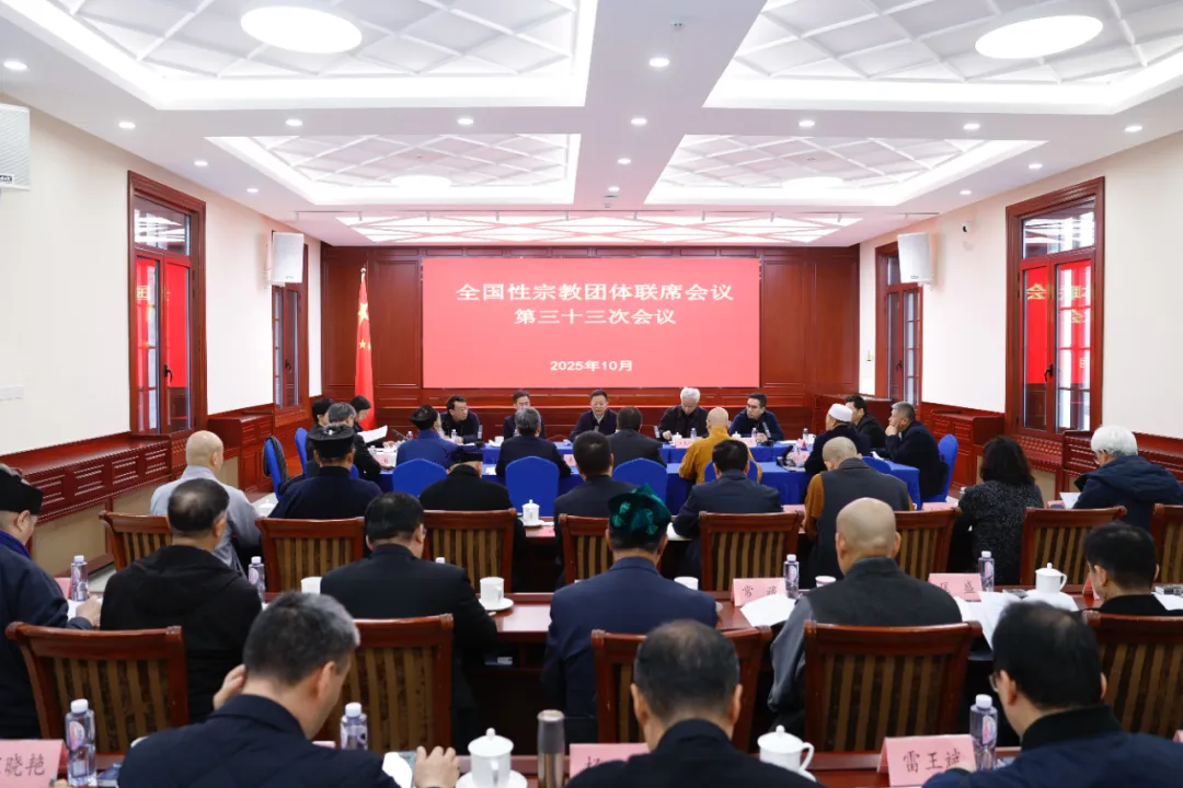 10月30日,全国性宗教团体联席会议第三十三次会议在京举行,会议传达学习了中共二十届四中全会精神。中共中央统战部副部长、国家宗教事务局局长段毅君出席会议并讲话。中国佛教协会会长演觉、中国道教协会会长李光富、中国伊斯兰教协会会长杨发明、中国天主教爱国会主席李山、中国基督教协会会长吴巍作了发言。会议由中国天主教主教团主席沈斌主持。