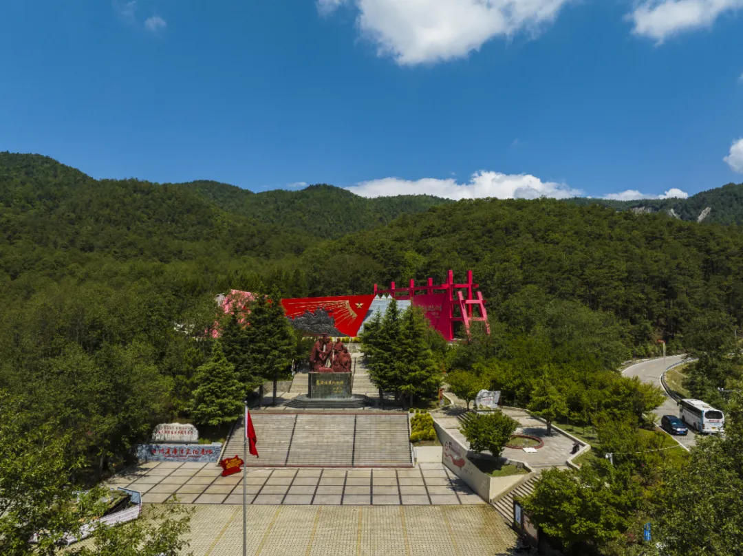 图为彝海结盟景区航拍,后方红色建筑为彝海结盟纪念馆。冕宁县委宣传部供图