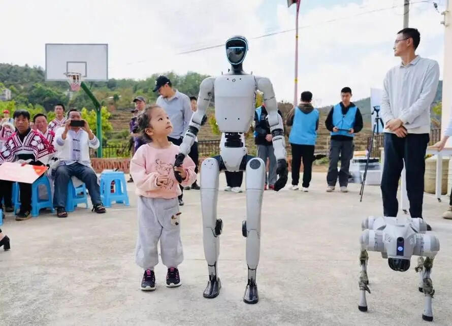 最兴奋的当数村里的孩子们,他们围着机器人久久不愿离去,有的主动对话互动,有的模仿机器人动作打招呼,欢声笑语洒满广场。